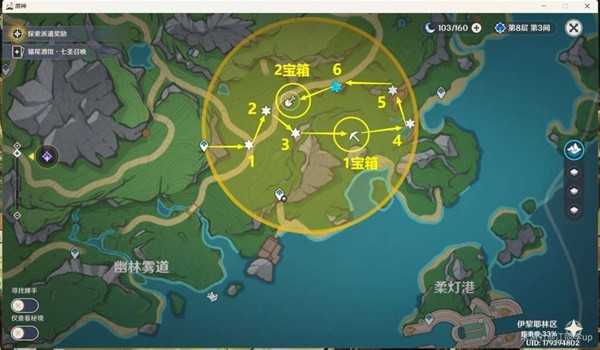 (4)拾取后面3个能量球后,第2宝箱位置就会出现,开启挑战,打完怪,再收集完附近的能量球后,即可挖掘出第2个宝箱了