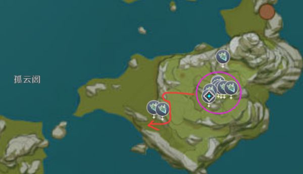 #04 - 璃月 - 孤云阁(东南侧,秘境) - 穹底6只+山路入口2只 .
