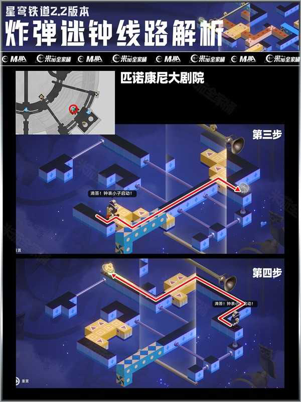 《崩坏星穹铁道》2.2版本更新了匹诺康尼新地图,在新地图中分布了很多梦境迷钟解密,有些玩家不太清楚这些梦境迷钟要怎么解,下面请看由“米茄全家桶”带来的《崩坏星穹铁道》2.2新地图梦境迷钟解法,希望可以帮到大家。