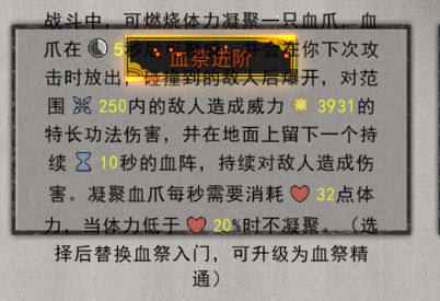 血魔最好是搭配血爪,血爪伤害高。血爪升级版,还有个维持几秒的圈圈,算是范围上。我元婴血爪伤害比神通高。