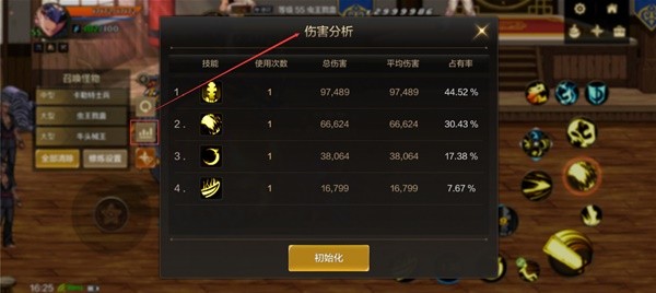 召唤怪物右侧的三个按钮分别是【重置技能CD】,可在施放技能后重置CD;【查看伤害分析】,可在一套连招后查看技能的使用次数、总伤害、平均伤害和伤害占比;【设置连招】,可引入系统推荐的连招顺序并进行练习。