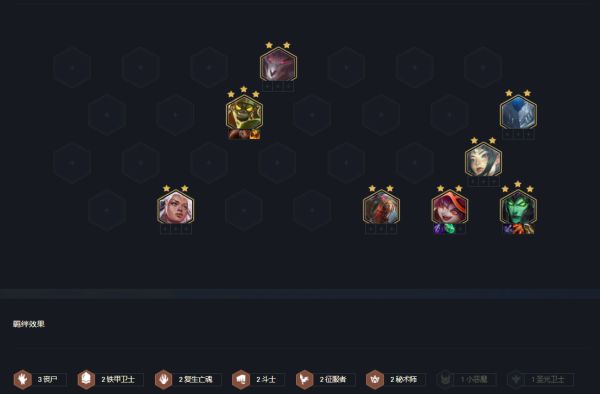 这套阵容是在搜卡时候剑魔不能三星,可考虑转的阵容。就是挂三丧尸努努穿肉坦装备,在看情况添加铁甲与复生羁绊。阵容比较灵活。