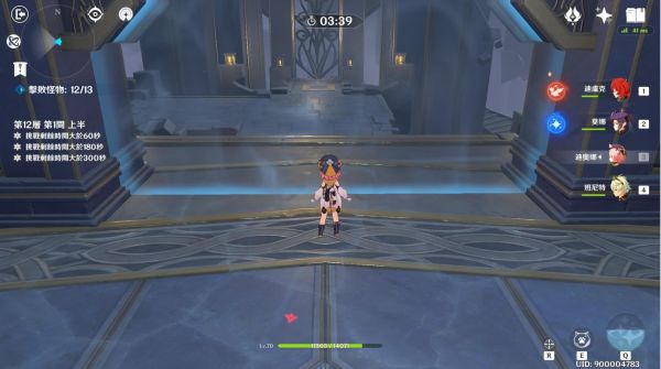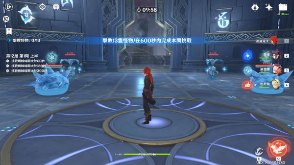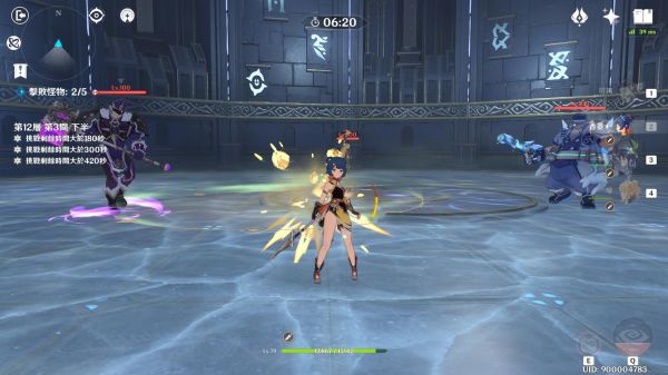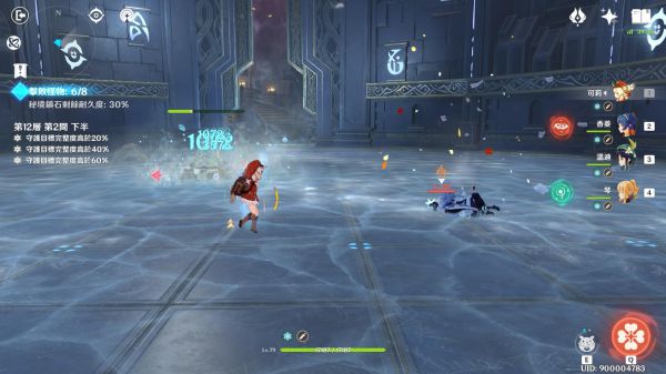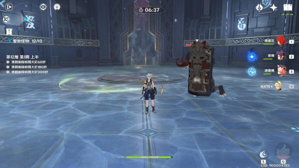 这关绝对是先存版本最难的一关没有之一!首先先介绍环境,除了12层的体力减少以外,12-3下半还会大量的落冰,被冰打到等同于中了30秒一次的「增加体力消耗」机制,有一个落冰有几千的伤害外,还会造成1.5秒左右的硬值时间,运气差一点,同一次连续中五下落冰都是很常见的。
