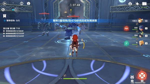 守护型关卡,没有时间限制,12丘丘弓箭手+4冰骗骗花,共16只怪,开场6只怪,杀一只生一只除非把他们都杀完,不然场上会一直维持6只怪,因此记住所有出怪点就变成了这关的基本功了。