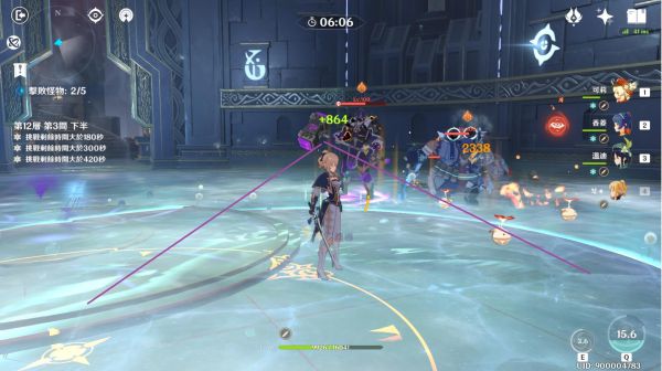 这三只中岩最爱乱跑,而且最好杀,建议追着岩打,剩下两只自己会跑过来,如果有聚怪可以先跑到岩后面对着中间放风神之诗,等等3只都汇聚过去,一并输出收掉,其中电流也是有规律性的,这关的电流一定出现在你的角色「前面」,基本上为一个「<」的型状,并且缺口处朝向你的角色,如果能准确计算时间的话甚至能再发动时故意朝向比较不影响输出的那边,这样电流就会出现在根本对你不痛不痒的位置。虽然说得简单,但实际上还挺艰辛的,一边得小心落冰跟电流,一边要保持输出,出盾破盾,没盾用力打,习惯这个节奏以后就恭喜通关啦!