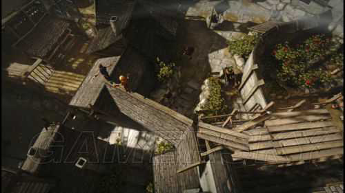 step4.来到村子前,那个顽皮的小孩把大门给关上了,那么两兄弟唯有通过村子旁边的岩壁翻进村子,两兄弟靠近岩壁底部两块大石(按LT、RT键)攀扶上去,然后(左摇杆↑、右摇杆↑)抬头往上看,(松开LT、RT键)往上跳然后在马上(按LT、RT键)抓住中层的大石,如是而已爬上小山头。兄弟俩继续(按LT、RT键)攀附着小山上的城墙边缘爬进小镇,然后往露台右侧的大鼓翻过一堵墙,接着两兄弟一起爬上壹段省网来到屋顶,从屋顶落到猪棚。