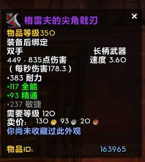 只有部分的掉落截图,推算应该所有的武器类型都会掉落BOE,并且可以战火。盾牌套装的特效应该只是占位符,后续肯定会改的