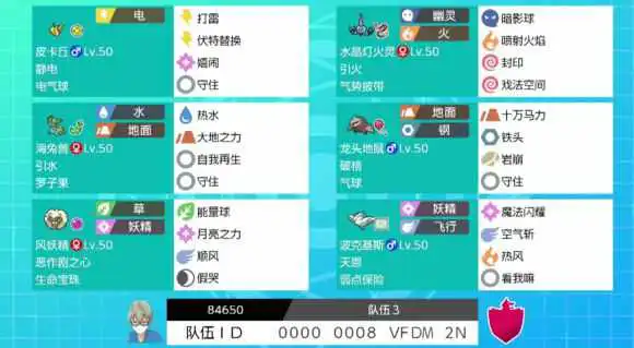 钢系草系以及晴天队对策,除了封印对面空间,有时候也可以自己开空间或者反开空间(虽然和皮卡丘的核心效果麻痹有点冲突)。打重空间队不能太依赖封印空间,会被见多识广的对手集火打死鬼灯。火放和热风的取舍上最后还是选择了火放。几次影球ct秒了满血煤炭龟(实际上极攻ct秒煤炭龟也是50%的概率)让我印象深刻。因为没有守住,气腰也怕沙暴、极巨岩之类的,要小心操作,特别是打晴天队如果过早过劳死很容易崩。通常不首发放后面,读对面下马威或者联防再换上,皮卡丘麻痹对面后再输出。