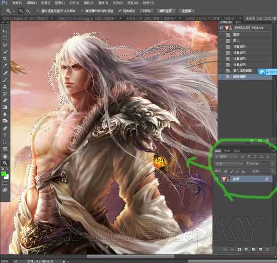 4.打开SAN12 的图并载入选区复制,将刚刚复制后的图,贴上高清原图,得到图层1。