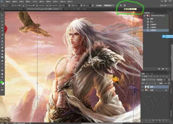 5.在图层1上按Ctrl+T键,并调低透明度,以便重合两图层,调整好之后,按上方确认变型键。