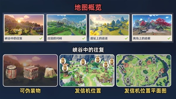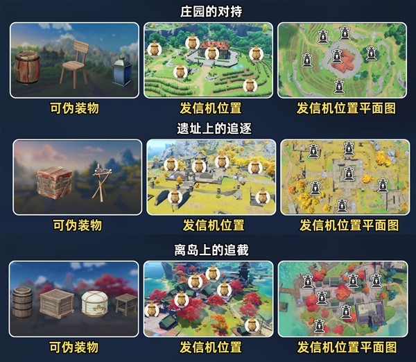 5.全地图的「可伪装物」和发信机位置概览。所以不要看着啥就对啥用技能了哈~特别是第一次玩躲猫猫的新手,有些能把角色当作地图npc的,擦亮双眼,这是不可能出现的事情哈。