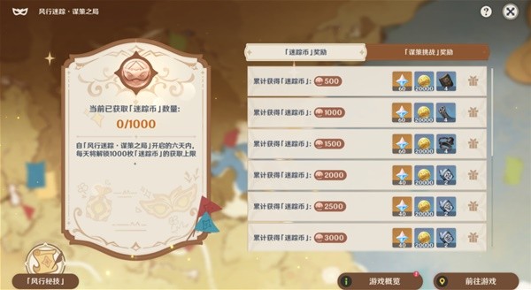 1.每天解锁1000「迷踪币」,前面没玩会累积,6天全部解锁!所以没时间玩的小伙伴,可以等全开放了再玩,就不会因为迷踪币上限了而浪费多余的迷踪币。