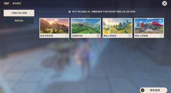 2.一共4张地图,默认勾选,随机进入。如果想玩特定的地图,就把其它的3张地图全X掉,或者不想玩的地图也X掉即可。