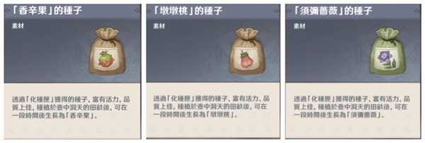 4、「化种匣」中新增了「须弥」地区的部分采集物种子;