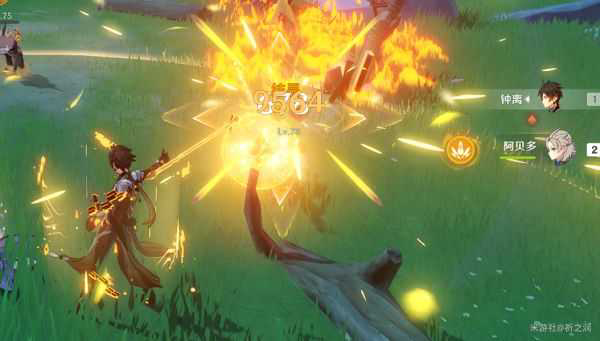 啊,其实不要紧张这个E技能技能判定还是做的很好啊的,假设,丘丘人头上是水属性,处在E的圈内这个时候你用火去攻击,判定会先蒸发。如下图所示