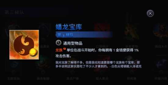 无脑抓,优先度甚至高于上面所有天赋。你有50金币,龙骑就加50%攻击伤害,你有100金币,龙骑就加100。后期存钱别搜棋子,然后给龙骑一个BKB疯狂输出,基本无解