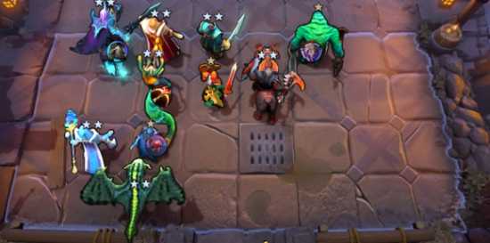 然后是阵容摆放,这个其实主要是看情况的,并不是固定的。不过我可以发一个比较万金油的摆放方式比如这样,如果对面前排火力足,可以将龙骑和蝙蝠进行换位让蝙蝠去抗伤害