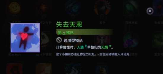 失去天恩,这个天赋其实可以被划分到T1,。但是为什么这个build下只能说是T2呢,因为这个天赋更适合我另外一种build。也就是说你要是抓到这个天赋,其实就没必要玩4巨魔4骑士了,可以玩6亡灵4骑士。但是你强行要玩巨魔骑士还要抓这个天赋的话也行,因为2个人类转化为亡灵,所以是4亡灵羁绊