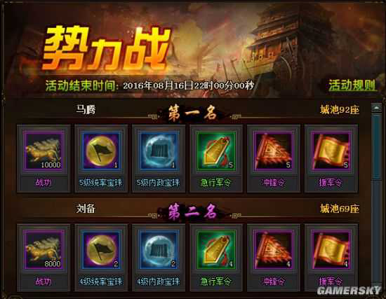 四、势力战排名