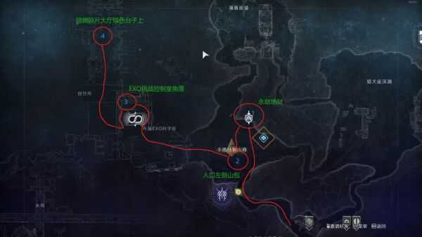 传送木卫二寻找到3个EXO残骸,推荐先进卡德马斯山脊遗失区“永劫地狱”EXO+1,然后卡德马斯山脊入口左边山上EXO+1,之后前往“布瑞EXO科学所”EXO+1,顺便在第四步中把“创世所”中的EXO残骸拿了,把卡德马斯山脊的4个EXO清了避免以后记不清楚。