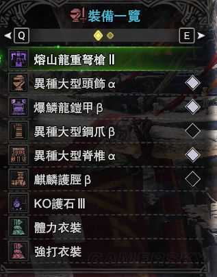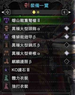 (珠子用3炮术2铁壁2体力1解放1墙壁,武器克制全孔1盾2反动,可能看配装的你会缺炮术跟铁壁珠,那也是没办法的事,命中注定难产那几颗,快300小时还没有强弓。)