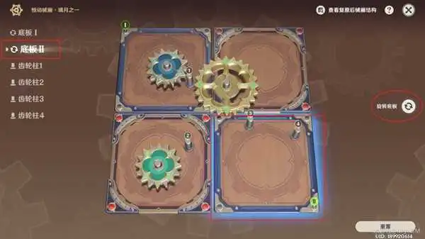 第二步:齿轮柱1、3放入大型齿轮,齿轮柱2放入中型齿轮