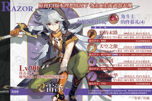 因为之前计算武器评分采用动态分配,很多人抱怨分配暴击、暴伤过高过于夸张,本次评分角色统一理之冠为暴伤,圣遗物副词条合计20%攻击力45%暴击率20%暴击伤害带暴伤头定量来计算。本次计算涵盖了对武器特效白字伤害的计算,但是非常保守,实际输出会有1~2%的提升。