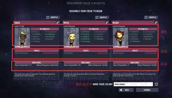 我自己收集的一些关于《Oxygen Not Included》(中文暂译:《缺氧》)游戏开始前,人物角色选择的一些说明。