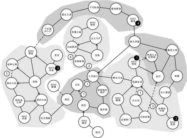 虚线道路旁的数字:代表需要第几号荒魂才能通过的道路。