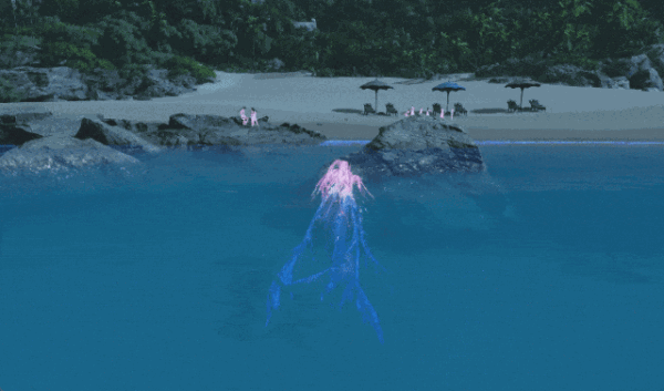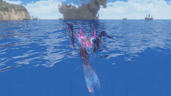 在鹏形态下的同门,踏足水域时,将化身为鲲形态,一秒从翱翔九天的大鹏,化身为在海底遨游的海洋精灵!