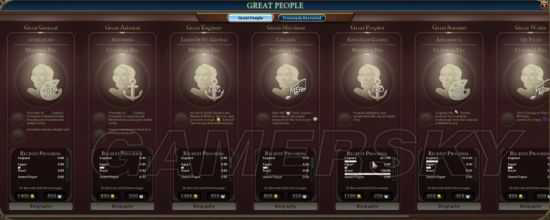 一旦有文明获得了某个类别的伟人,对所有文明来说,获得下一个该类别的伟人所需的伟人点数也会随之水涨船高。所以你也可以选择策略性地放弃一些自己不喜欢的伟人,留着点数招募自己中意的伟人。
