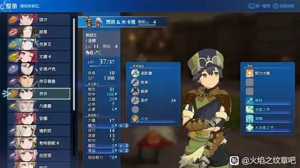 3.刀剑.刀剑首先幸运魔防补正高,这就和勇士的防御高反了过来,这就很好。其次刀剑能拿剑s,我贾恩吃了30级体格成长的人(1-10是斧战士),必须拿s剑。最后刀剑还是个连携人,这个和勇士一样。所以刀剑是最优选。
