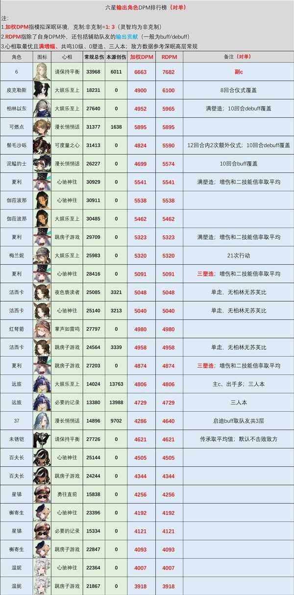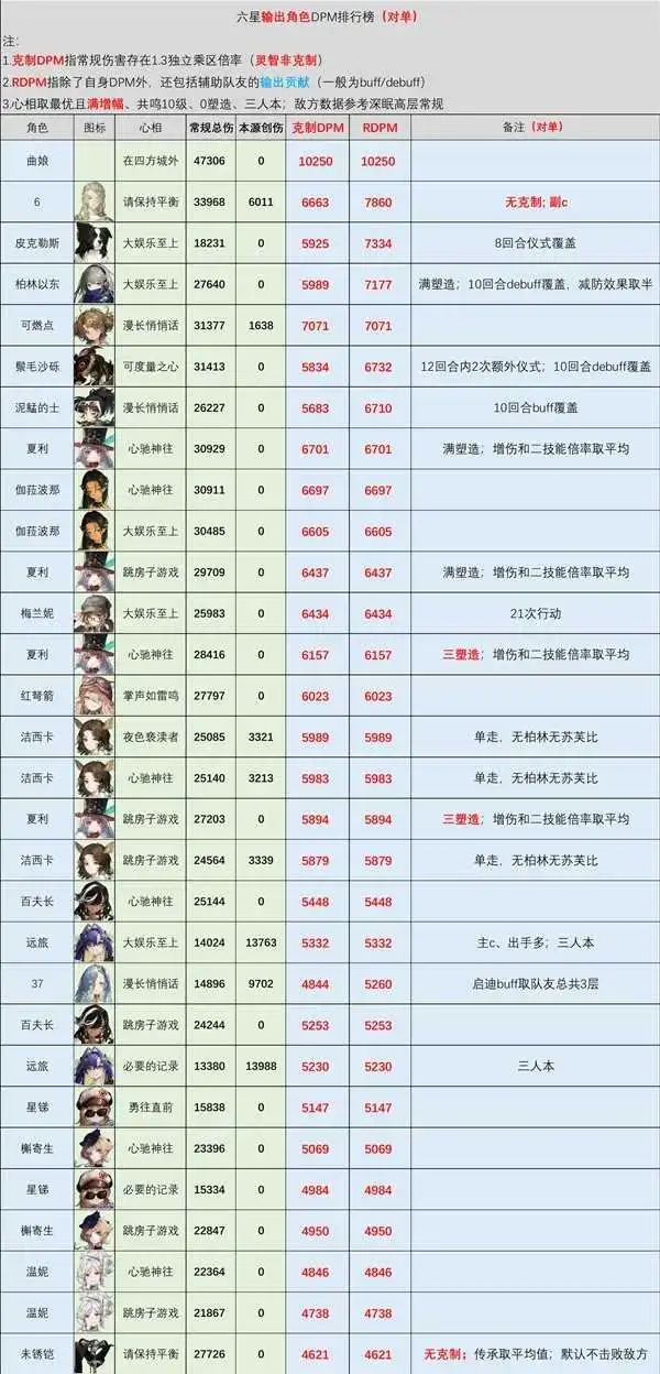 《重返未来1999》中6星角色普遍强度很高,那么目前各个六星的输出能力谁更出色呢,下面请看“icehood”带来的《重返未来1999》全六星输出强度参考,希望能够帮助大家。