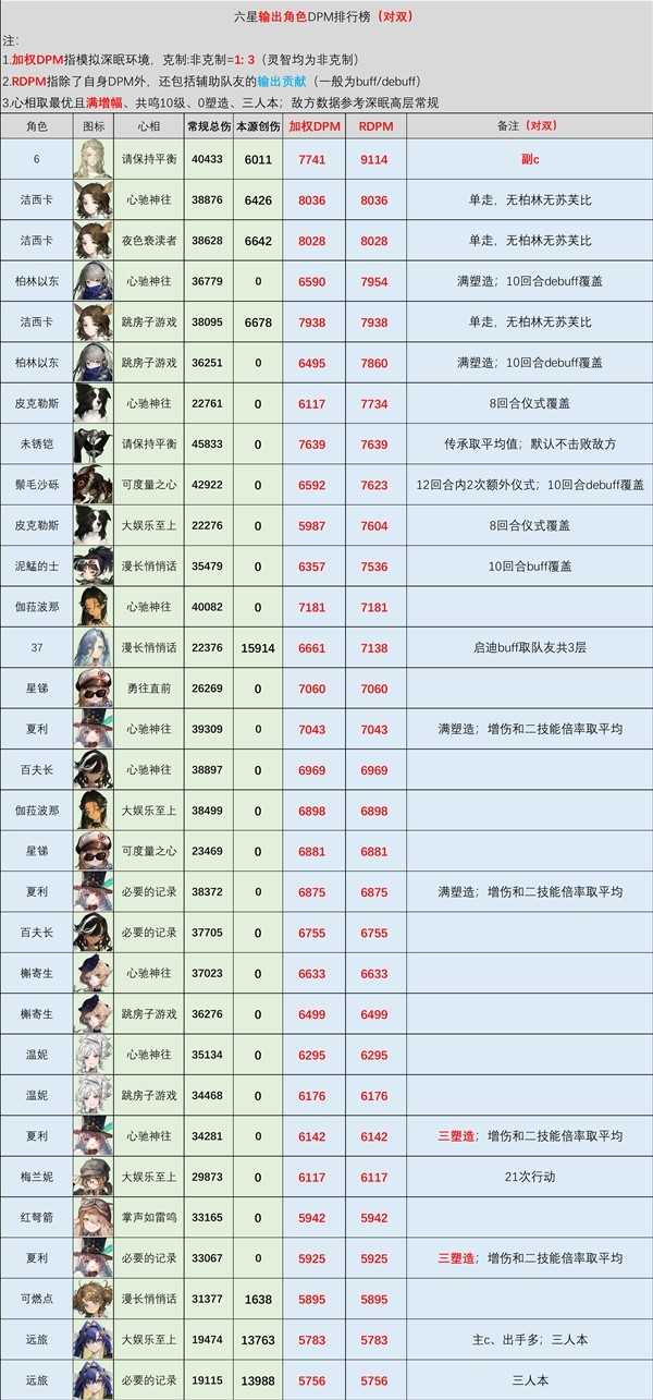 RDPM即为角色DPM+角色辅助贡献的DPM总和。全角色计算得默认平均攻击力1800、暴击率45%、暴击创伤140%、创伤加成15%。