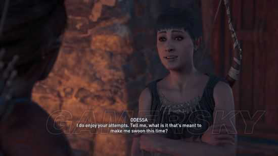 奥德萨是你会遇到的第一位可能伴侣人选。你会在凯法隆尼亚岛外头遇到她。奥德萨是奥德修斯的后裔,她到外头展开冒险并渴望闯出名堂。帮她接受自己的凯法隆尼亚岛血统,你就有机会再次于墨伽里斯对她伸出援手。一旦你完成所有与她相关的任务,你就有机会进一步认识奥德萨,甚至可以邀请她加入你的队伍。