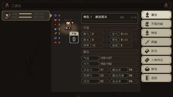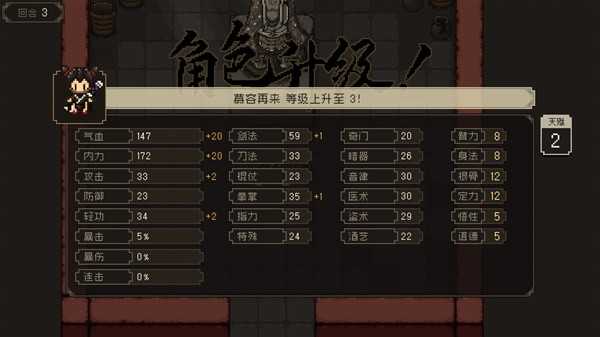 花3点身法定力补10,身法10,配合剧情丹药身法来到16。足够学中级武功。天赋点还有16点。