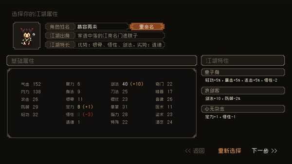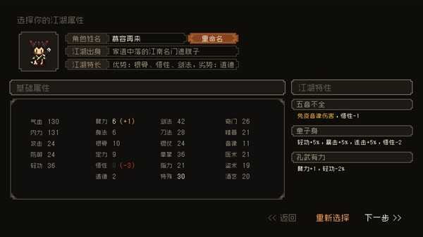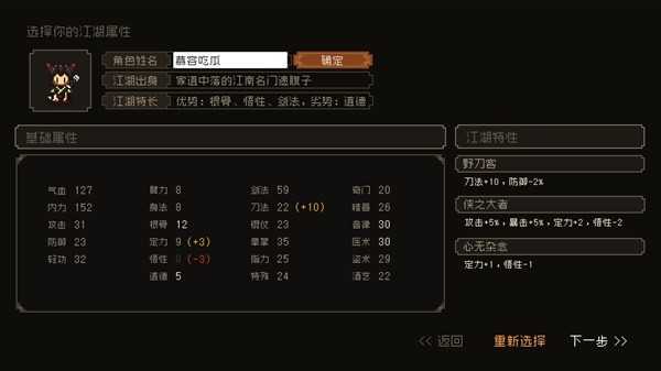 这一个勉强能用,但是我算了一下,根骨定力太低,最好是童子身加一个加定力减悟性的天赋。