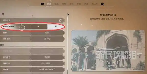 穿上阿泰尔初代服装后,建议在屏幕设置里打开经典颜色滤镜,回归《刺客信条》初代的经典感觉。