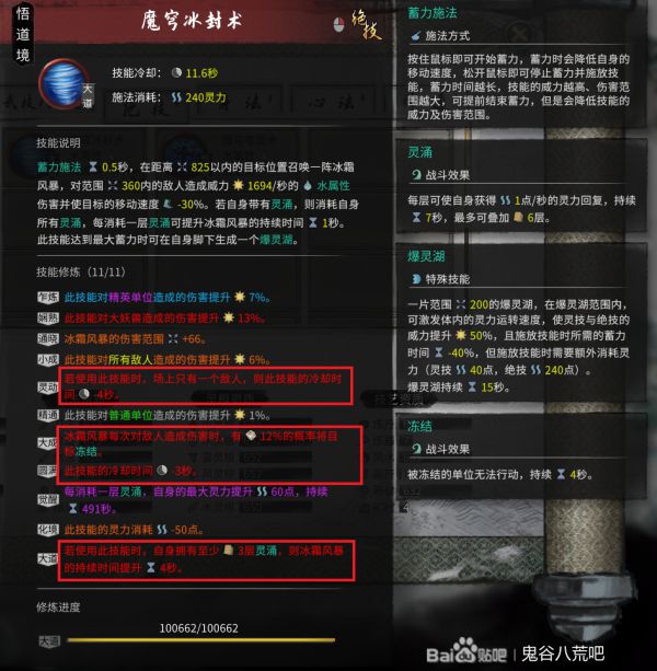 之前元婴的版本用处不大,因为冰风暴场上只能存在一个,冰冻效率太低。化神悟道版本更新后就没有上限了?(实际上限不清楚,因为并不是绝技0cd,0cd本身也不可能,因为右键有蓄力时间)
