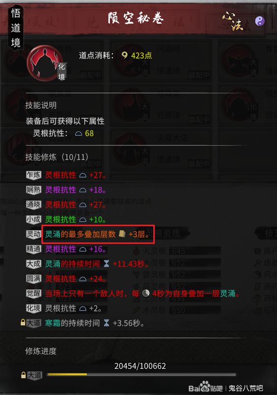 这是我第一个悟道洪荒档,开局风修,所以我神通和身法用的极风暴和龙卷风,可以加强生存能力和清怪能力,配合劲和经还可以旋风加伤和回血,实际应该可以用火系或者其他的,但我是无修改也没有sl过拍卖行和藏经阁,所以没测试过。