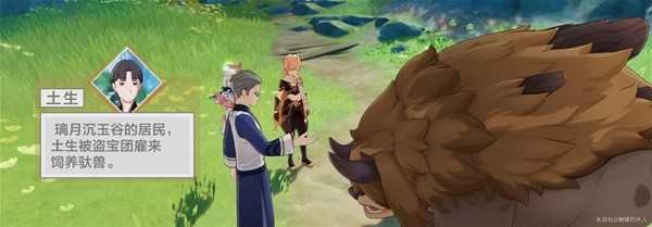 文华告诉我们,他的驮兽被盗宝团抢走了。