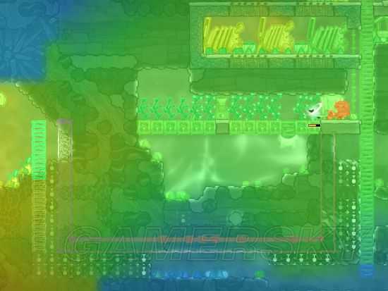 在规划水库第一层的时候在温度界面可以看到左边由于规划到了淤泥区而温度有较大提高,因而最左方的两层选择用隔热砖来代替砖块防止热量传递。