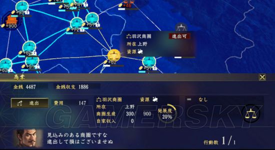 “进出”─派遣御用商人进入商圈,获得影响力,进而获得金钱收入。