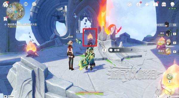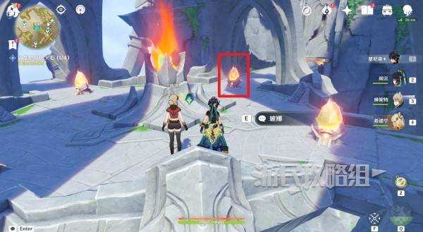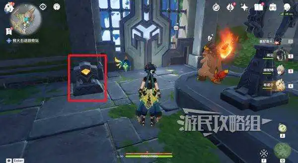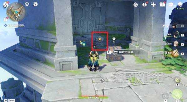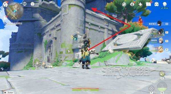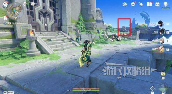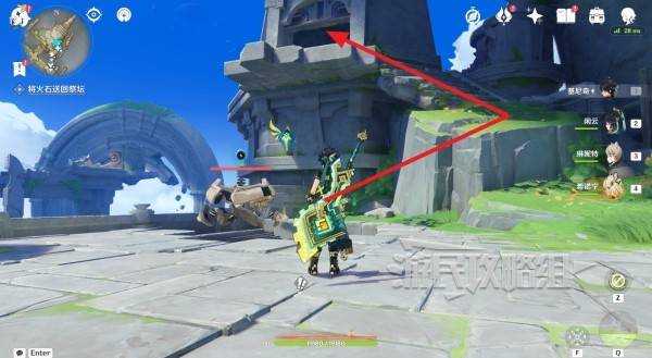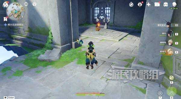利用漂浮的石板到达上层,可以顺便拾取一个神瞳。注意上层会触发战斗,记得提前调整好战斗阵容。