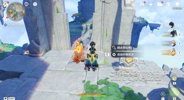 到达尽头后,启动升降机关,继续与小龙互动并返回祭坛。