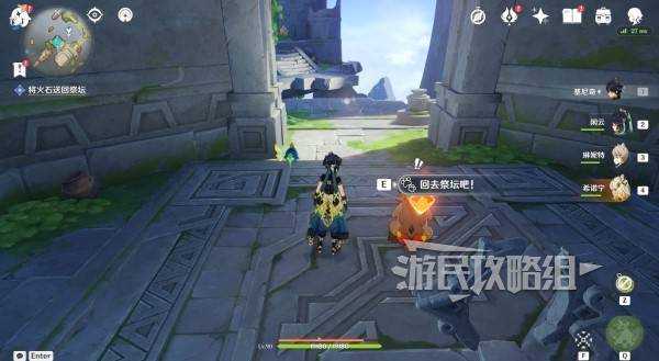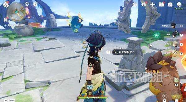 与小龙互动选择回去祭坛吧,跟随小龙前进。