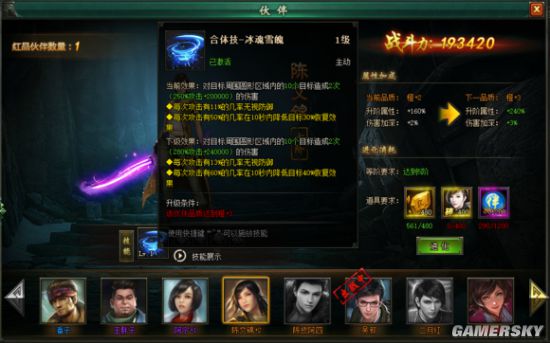 合体技能的升级是通过伙伴进化来升的,激活之后每进化一次,技能升一级,并解锁额外效果,依次是伤害强化,暴击强化,暴伤强化,眩晕这四种。另外,蓝色紫色伙伴只有伤害强化这一个额外属性...