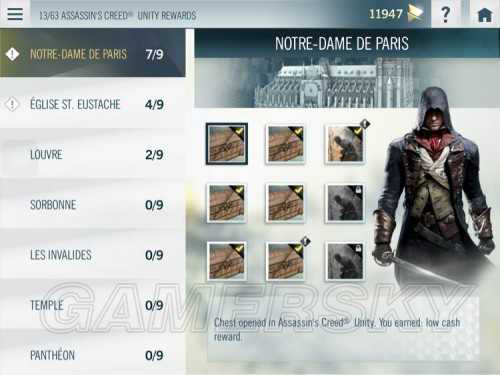 下面介绍最重要的部分 nomad任务 就是游戏里的蓝宝箱解锁。看到图上四个一组的图标了吗 这就是nomad任务首先 在巴黎岛上最开始你会有一组绿色的任务 那个是教学关 要解开紫色的就要同步鸟瞰点 并且关联app