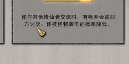 当前版本,如果从功利角度上讲不推荐选的天赋,它的实际作用是降低各种互动所需的好感度 但由于这个游戏的互动门槛很低 而玩家强度过高所以无论是高境界靠山还是降低要饭门槛的意义都比想象中的小,浪费一个逆天改命的位置却对战斗没有任何帮助 真的是亏到爆