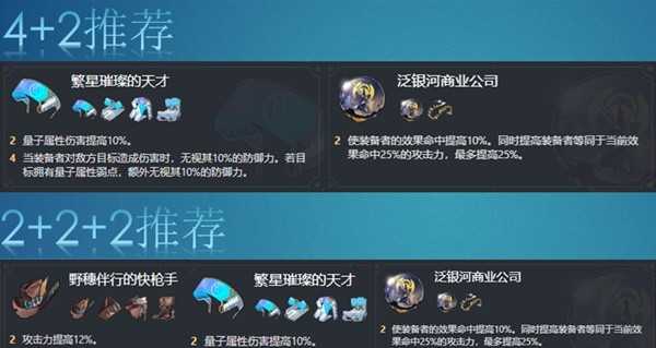 银狼遗器的最优选择为【繁星璀璨的天才】四件套与【泛银河商业公司】二件套。